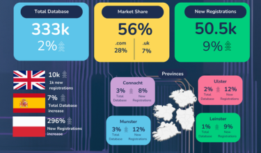 Finally, the snapshot outlines changes in Ireland’s overall domain market share. The .ie domain continues to increase its share, reinforcing its position as the most widely used domain in Ireland.